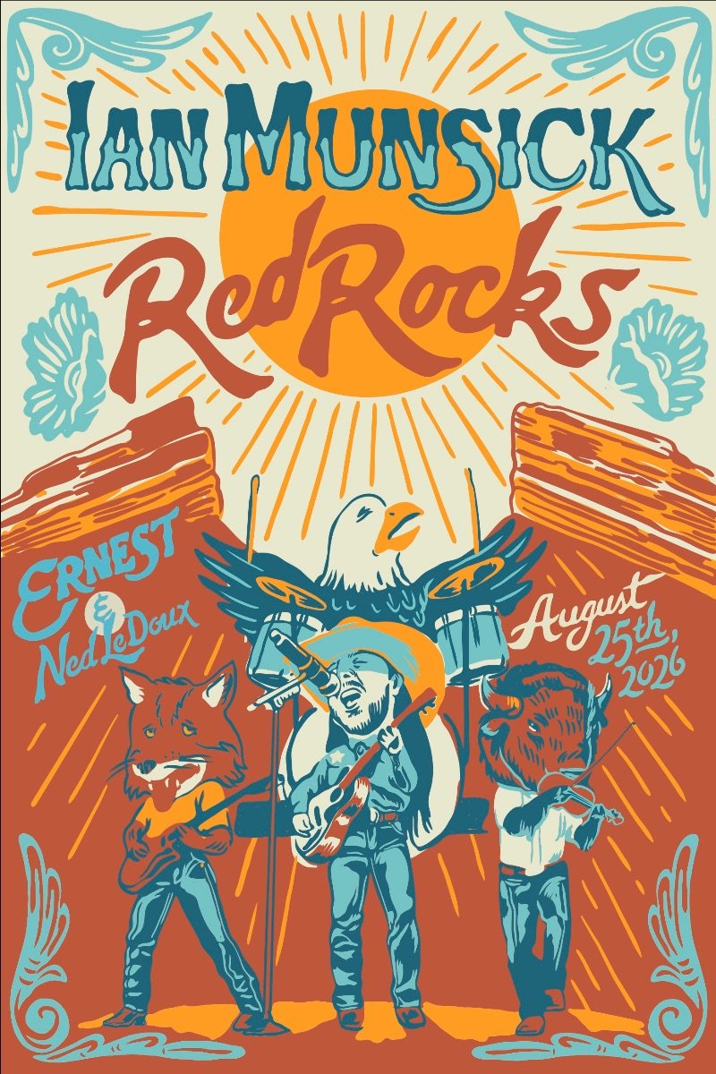 After selling out his headlining debut at Red Rocks Amphitheatre in June 2024, Wyoming native Ian Munsick is setting his return to the Rocky Mountain’s coveted venue alongside ERNEST and Ned LeDoux for one-night-only on August 25, 2026. Ticket pre-sale begins Wednesday, February 4 using code EAGLE, with general on-sale starting Friday, February 6 at IanMunsick.com