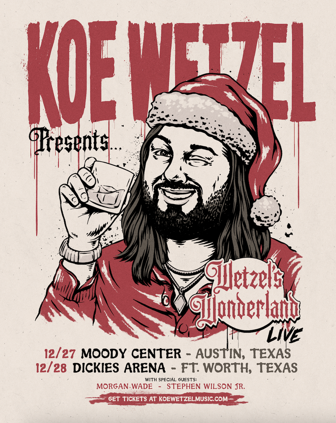 Forbes’s “rising music powerhouse” Koe Wetzel brings the holiday spirit home to Texas this Christmas, with two Wetzel’s Wonderland Live shows set for Friday, Dec. 26 and Saturday, Dec. 27 in Austin and Fort Worth, respectively. Tickets to both dates, featuring special guests Morgan Wade and Stephen Wilson, Jr., are on sale this Friday, Sept. 20.
