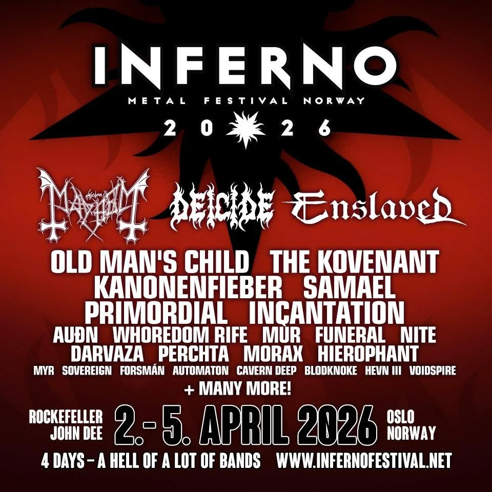 INFERNO METAL FESTIVAL 2026 is proud to announce the next round of bands to join the already stacked lineup! The festival now welcomes Mayhem, Primordial, Funeral, Múr, Nite, Hierophant, Sovereign, Blodknoke, Cavern Deep, Voidspire, Automaton and Hevn III.