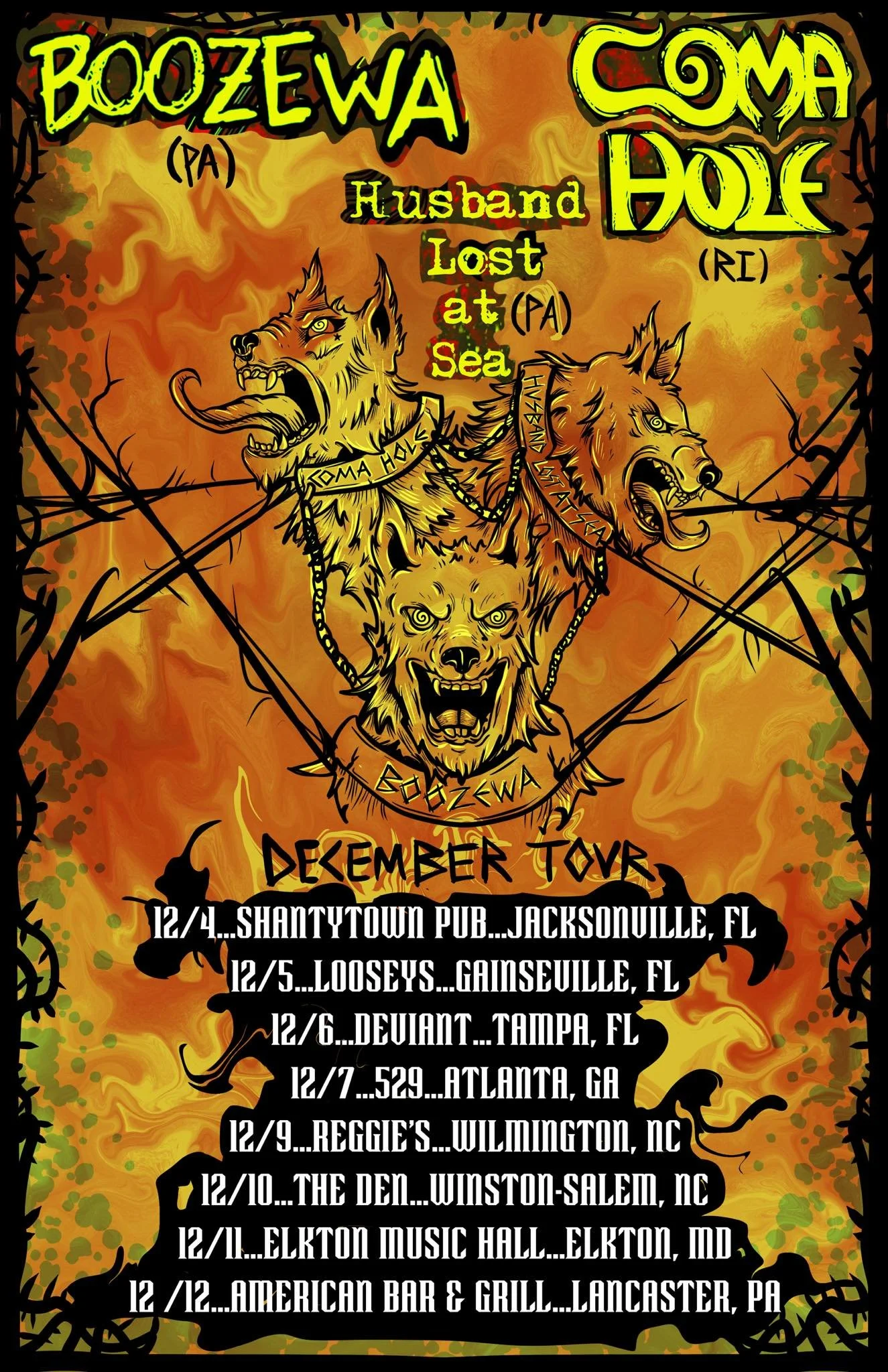 BOOZEWA’s winter tour with COMA HOLE and HUSBAND LOST AT SEA brings their dynamic three-piece energy back to the stage. The pairing of both bands creates a night of heavy, atmospheric, and fiercely independent music.