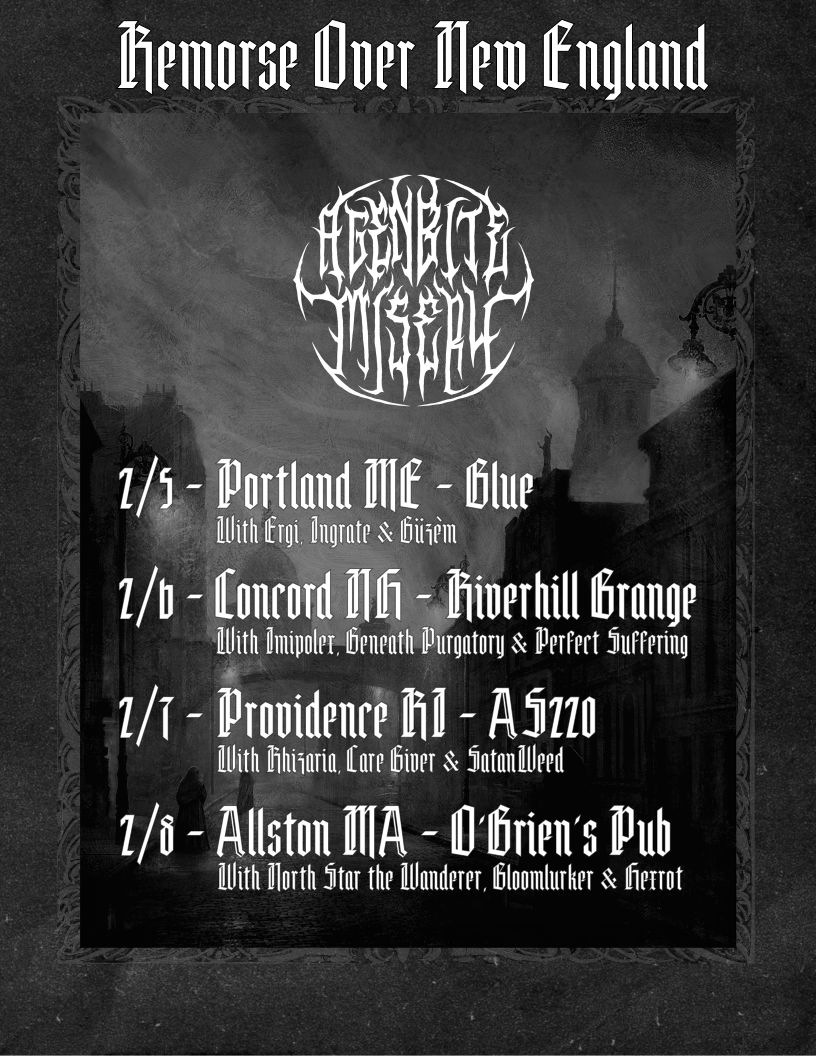 In support of the album, AGENBITE MISERY will embark on a four-date Northeastern tour this February: