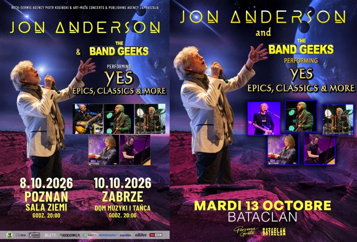 Today, JON ANDERSON AND THE BAND GEEKS announce the final 3 shows of their 2026 world tour. The new shows on sale today are October 8th in Poznan, Poland, at Sala Ziemi, October 10th in Zabrze, Poland, at Dom Muzyki I Tanca, and October 13th in Paris, France, at Bataclan. These follow the previously announced 22 U.S shows and the 13 UK/Sweden shows.