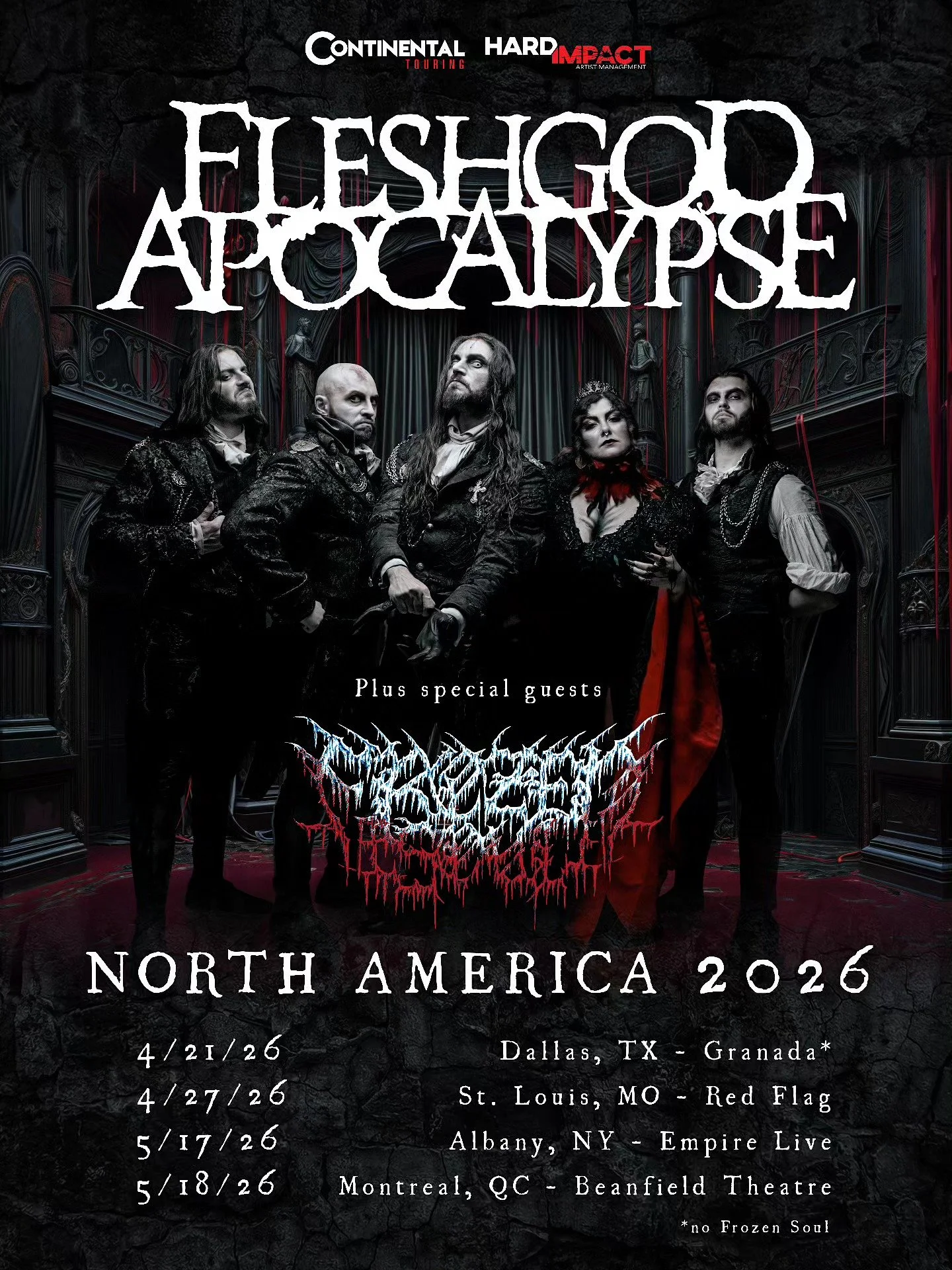 Italy's FLESHGOD APOCALYPSE are preparing to shroud stages across North America in their haunting, symphonic-infused death metal and have unveiled a series of headline dates for this spring. This follows the announcement that the band will be joining AVATAR on their "Don't Go in the Forest 2026" tour with guests FROZEN SOUL.