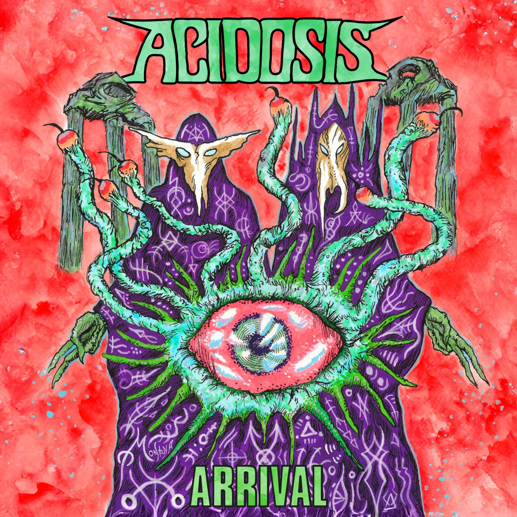 Arrival is a full-length album nearly 20 years in the making. Originally drafted during Ben Katzman’s teenage years, the songs have been brought back to life by a re-formed ACIDOSIS lineup featuring Katzman on bass and vocals, Diego Edsel, Deo Budnevich, and Jonathan Rusten on guitars, and Harry Schwarz on drums. The album was produced by Katzman and Ryan Haft, mixed by Haft, and mastered by Howie Weinberg. Art is by Juan Montoya (TORCHE) and layout by Perry Shall (GREEN DAY, BLACK KEYS).