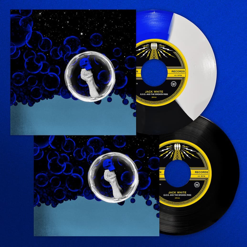 Jack White returns with two new songs, G.O.D. and The Broken Ribs and Derecho Demonico. The songs are available on black and tri-color 7-inches at all Third Man Records storefronts, Saturday April 4th. Black 7-inches are available online at thirdmanrecords.com.