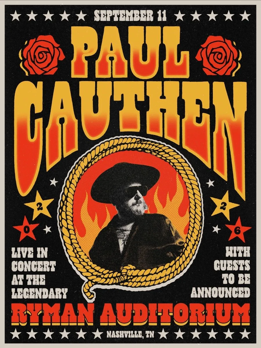 Whether he knows it or not, every man lives by a code. And for country provocateur Paul Cauthen, that code is simple. Always bet on yourself. A singer-songwriter with a well-documented distaste for playing by anyone else’s rules, the East Texas native spent two decades clawing his way through the country underground, embodying the independent spirit with a monolithic Big Velvet vocal. Fusing classic-country grit, gospel power and a rhinestoned rock edge, four previous albums proclaimed his singular style with a booming baritone and near-biblical swagger. Taught to sing by his grandfather in a Church of Christ, Cauthen hit the scene with the duo Sons of Fathers in 2009, before My Gospel, Room 41, Country Coming Down and Black on Black unveiled a vulnerable, fire-and-brimstone songwriter with brazen Texas attitude – craving deliverance, yet possessed by a “bird dog” instinct for theatrical rapture. Cauthen has toured the world, collaborating with Margo Price, Orville Peck, Cody Jinks and Lana Del Rey. With favorites like “Cocaine Country Dancing,” “Fuck You Money” and his GOLD-certified collab with Shaboozey on “Last Of My Kind,” he counts over 442 million global streams. Cauthen’s fifth album, Book of Paul, takes him further down his path of utterly authentic country music; fearless, proud and with two middle fingers in the air. Co-writing 12 of 13 tracks, the troubadour confesses to his wild side and wrestles with the sin. He spares no detail – and makes no compromise. For more information, visit paulcauthenmusic.com.