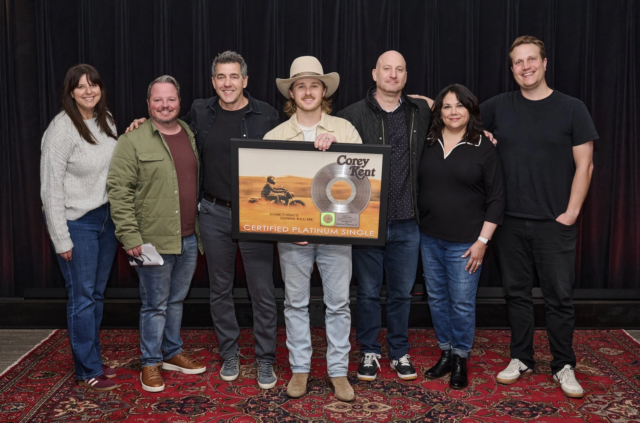 From L to R): Paige Altone (VP, Digital Marketing & Artist Development, Sony Music Nashville), Chris Fox (Artist Manager, Triple 8 Management), Ken Robold (President & COO, Sony Music Nashville), Corey Kent, George Couri (CEO/Founder, Triple 8 Management), Caryl Atwood (SVP, Commercial Partnerships, Sony Music Nashville), Jason McColl (Sr. Director, A&R, Sony Music Nashville)